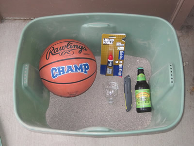 The next step was finding something to fill the medicine ball with to give it weight. The overwhelming fill of choice was sand. I stole my sand from the Tempe Town Lake beach, which is less than a mile from my home. I initially felt conflicted about it, then remembered the countless number of dust storms that I've been caught in here in Arizona. The less sand to swirl about the air, sandblast my vehicle, and contaminate my cocktails, the better. I was doing a service for the community by removing sand from the beach. Senator McCain, I expect to be recognized from the floor for my self-less acts.