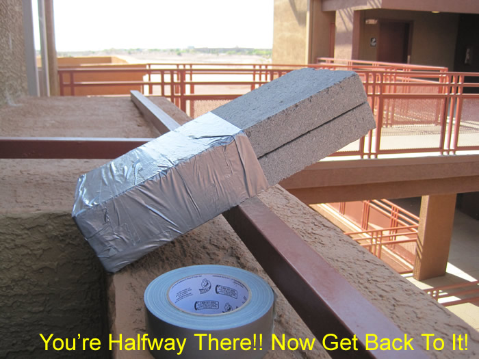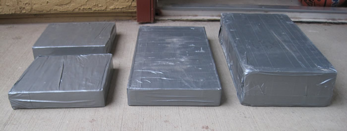 Go down to your local hardware store and pick up four common concrete blocks and some duct tape. We recommend common blocks for a couple reasons. First, they weigh about 14 pounds each, which is a convenient number. Second, they're thin and rectangular. At 8" across and 16" tall, they fit easily into a regular daypack, stack well on each other, and center naturally along the back. By minimizing bulk, and centering the weight vertically against your spine, they're a superior alternative to rocks, circular weight plates, jugs of water, etc.
